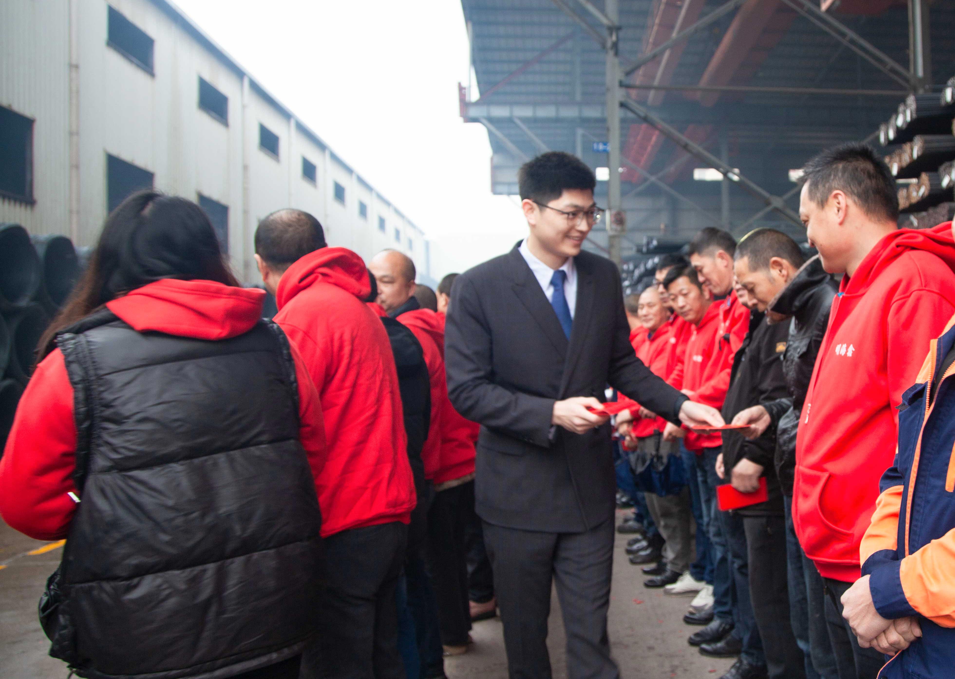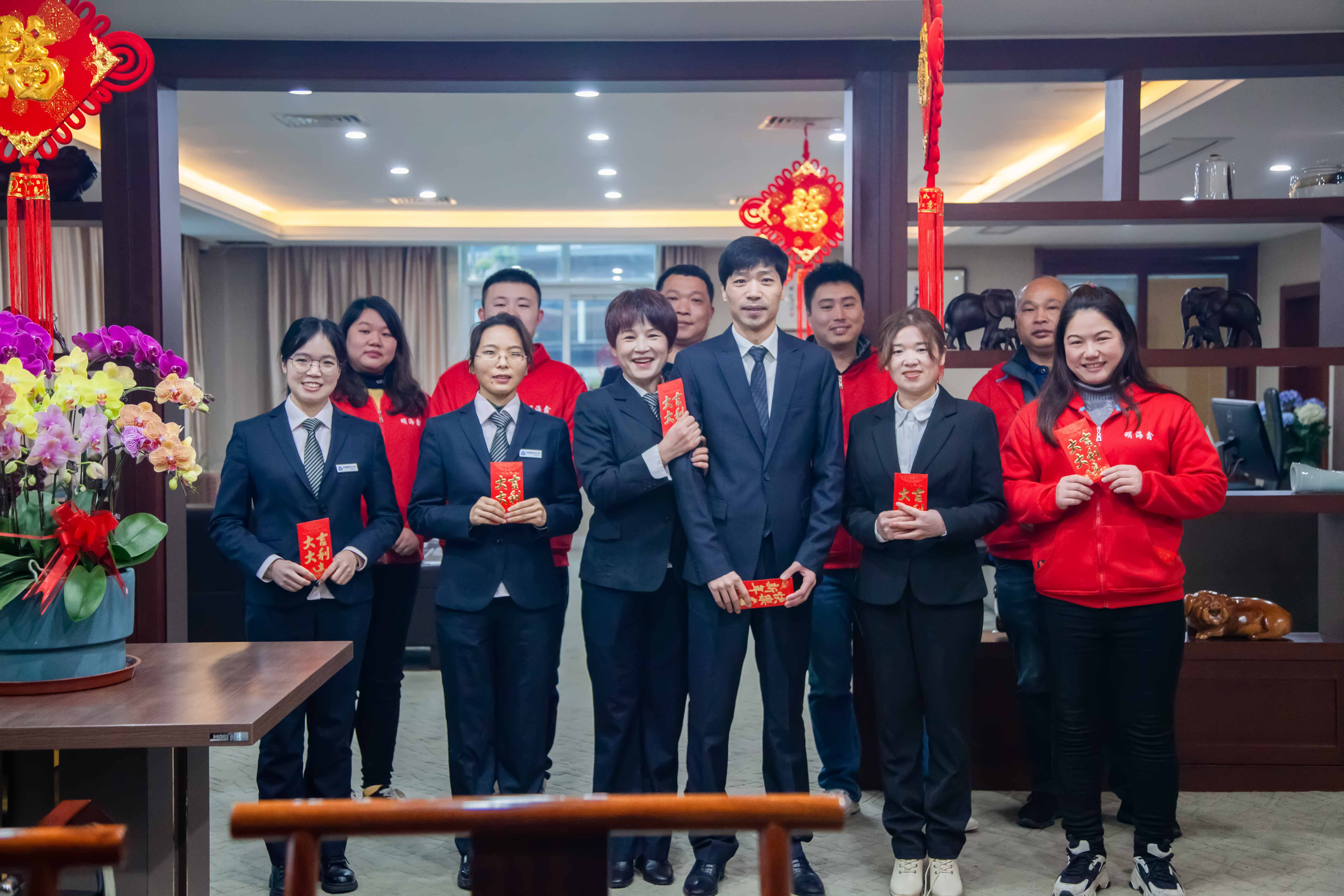 明海鑫開門紅!一大早公司總經(jīng)理高俊、高錦海就下到一線倉(cāng)庫(kù)給員工們送來(lái)開業(yè)紅包,并祝員工們新年快樂(lè)!一年都紅紅火火!