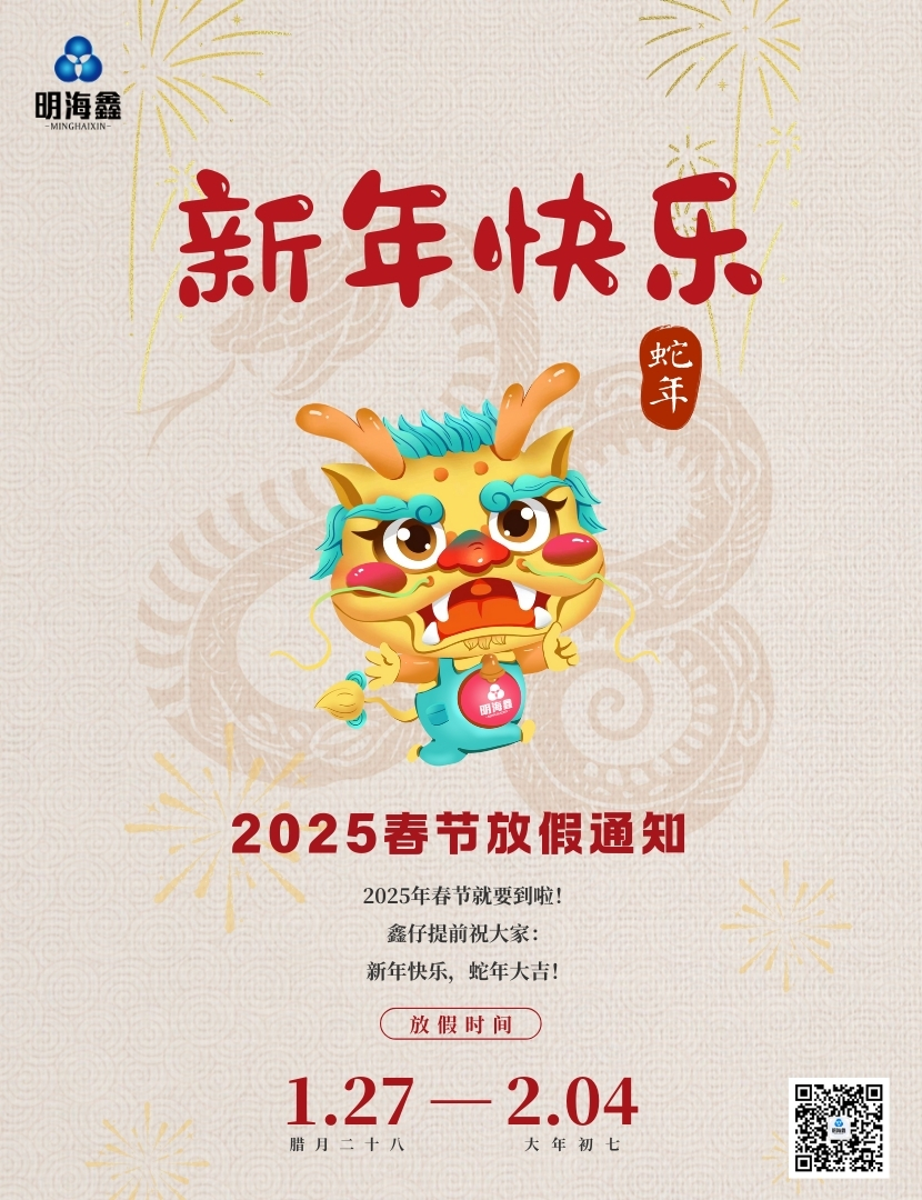 明海鑫春節(jié)放假通知、提前祝大家春節(jié)快樂!