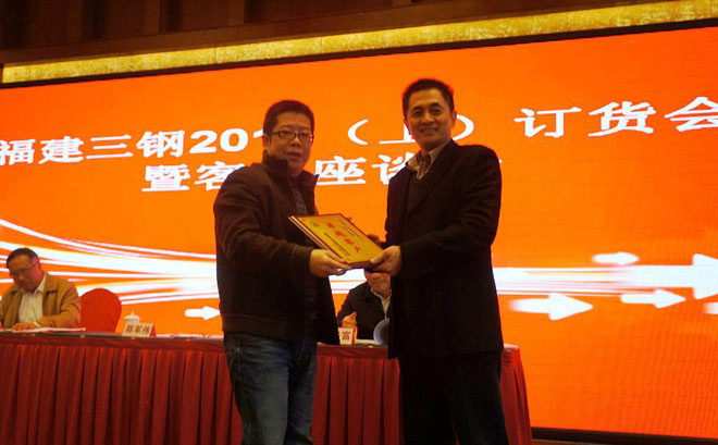 2013年12月21日,福建三鋼2014(上)訂貨會暨經(jīng)銷商座談會上授予福建鑫三元商貿(mào)有限公司2013年度“卓越客戶”的稱號。