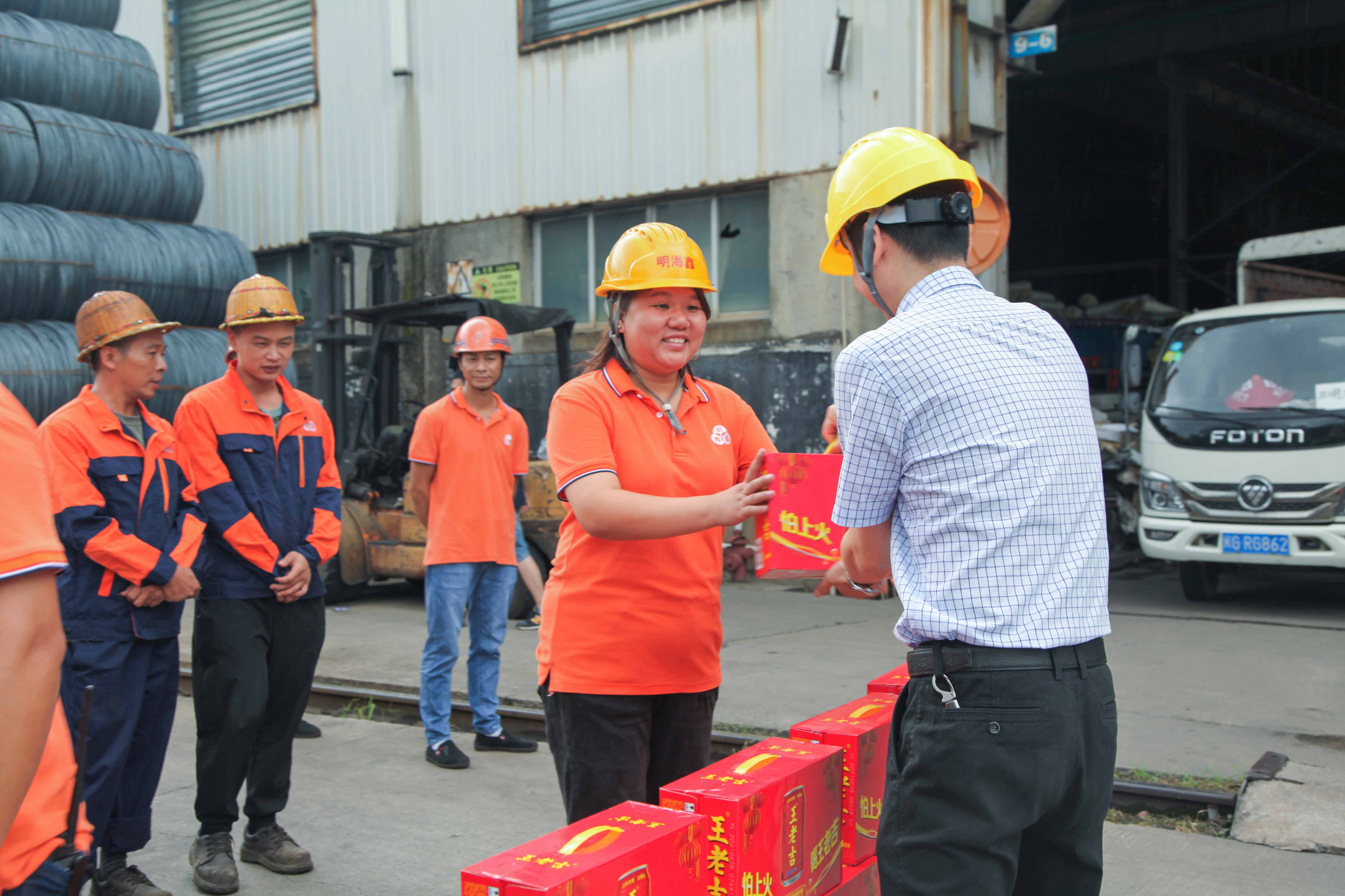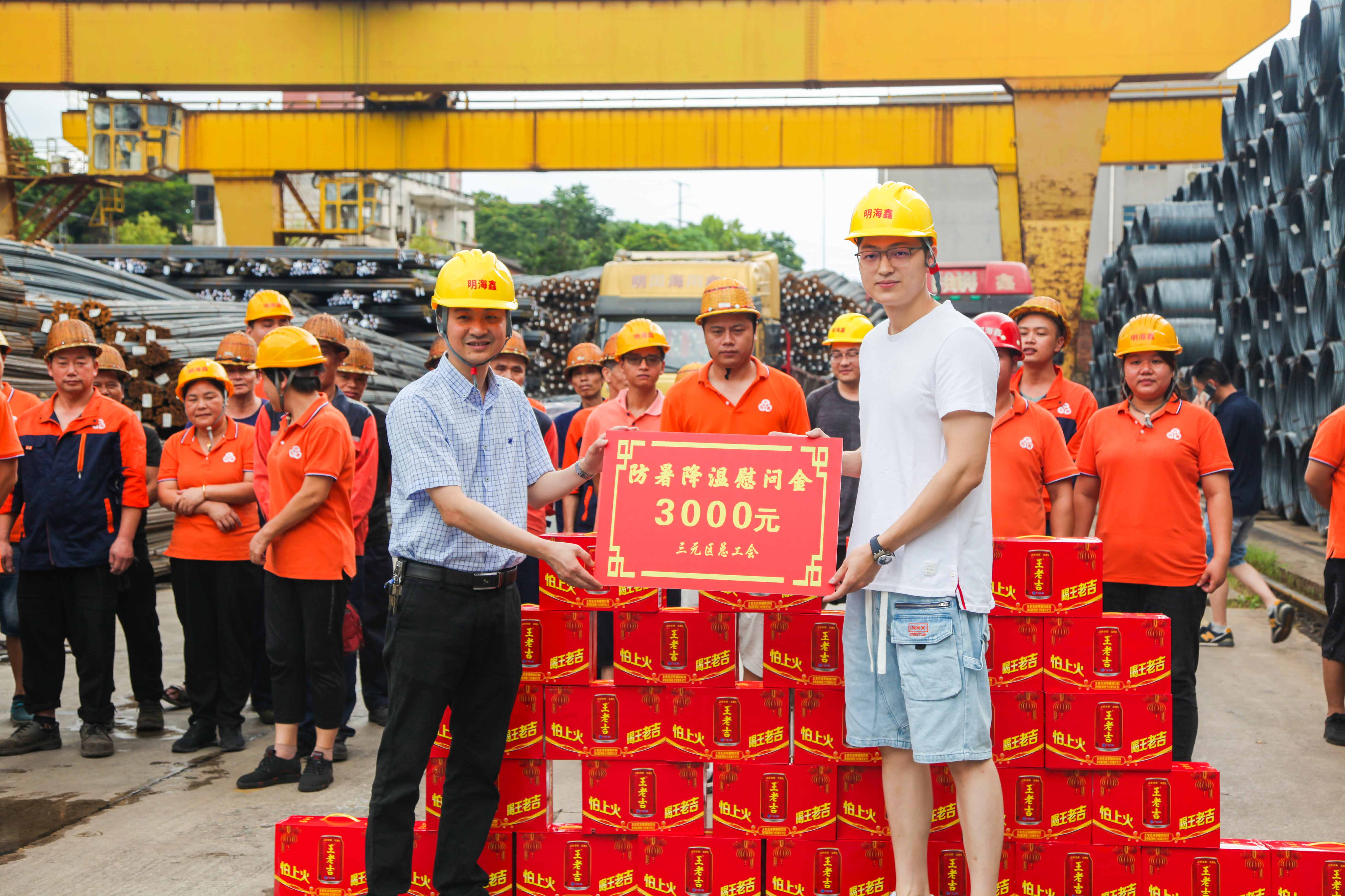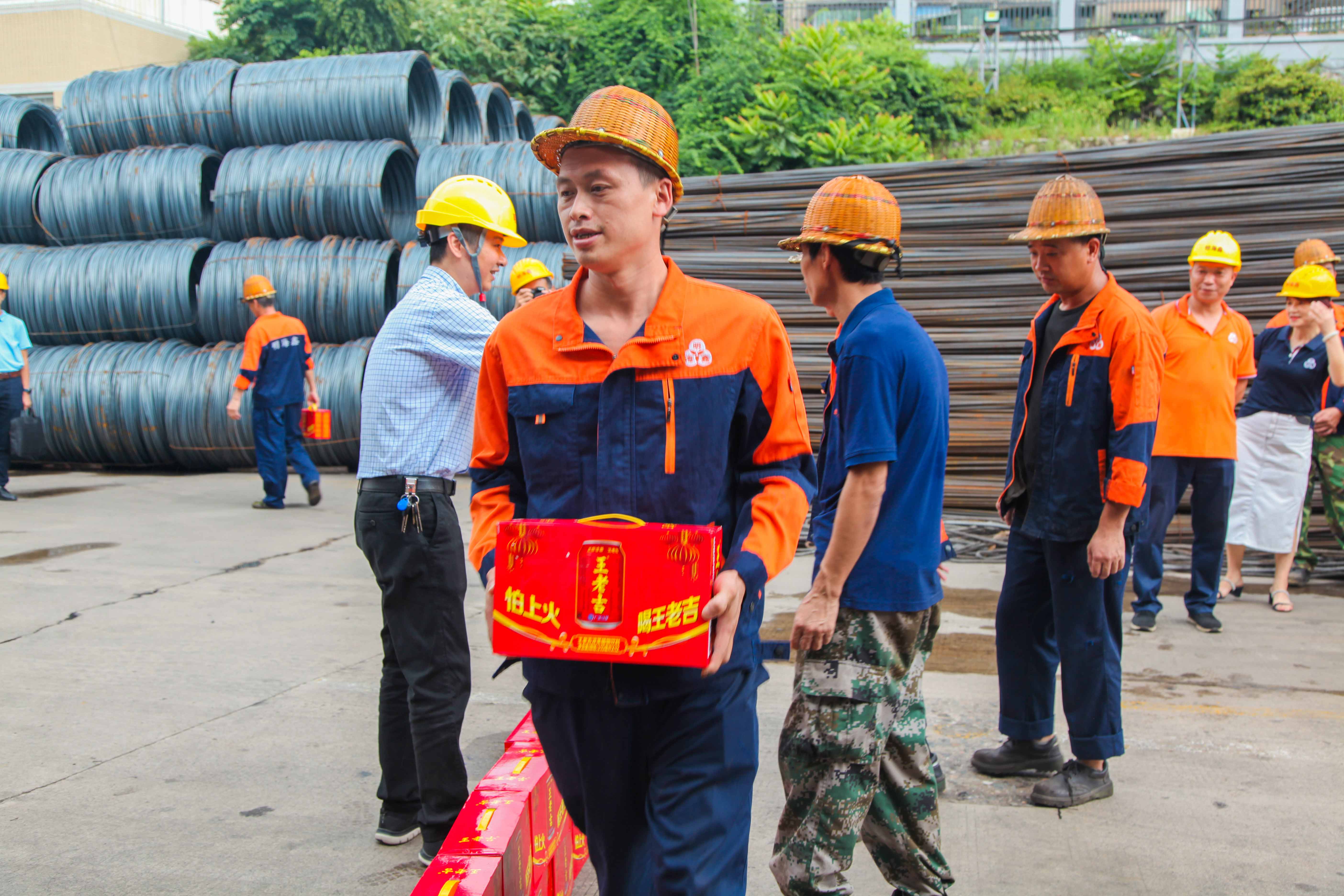 在活動現(xiàn)場,區(qū)總工會主席陳一龍將涼茶送到每一個工人的手中,并為我司送來3000元防暑降溫慰問金。同時為我司在高溫天氣下堅守崗位的一線職工送去關懷,叮囑他們在工作中要注意勞逸結合,把生命安全放在第一位。并叮囑他們夏季炎熱要保重身體,做好防暑降溫措施,同時抓好安全生產(chǎn)工作。
